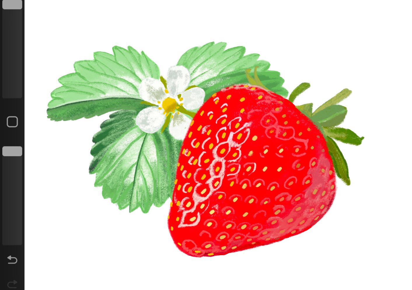 あすなろ 挿絵店 いちごのイラストを描いてます ネットでいい感じの構図で描かれているいちごのイラストを参考にして 葉っぱと花と いちご それぞれ別々の写真を参考にして描いて組み合わせます 筆感残してacに投稿 これからpixta用に解像度を上げて